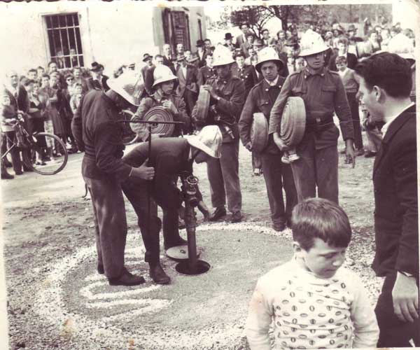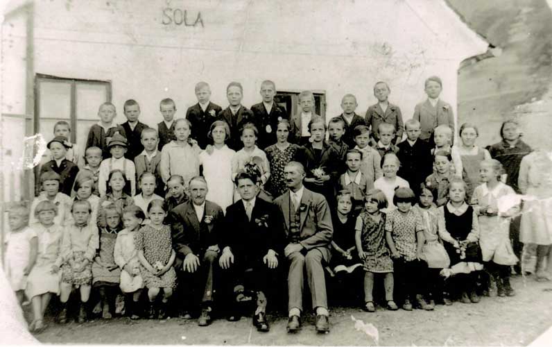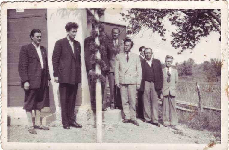 Na sredini učitelj Senekovič, levo župan Hribernik in desno trgovec Tulč