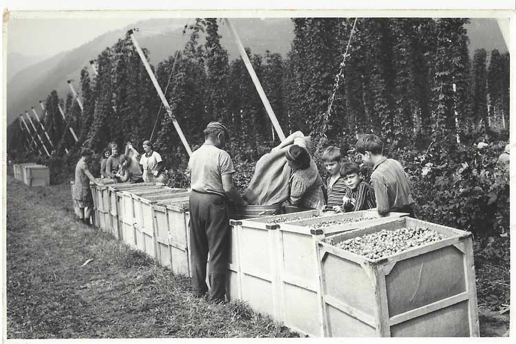 Prva njiva hmelja na Gortini se je posadila leta 1957 s sorto Savinjski golding, takrat najbolj priznano sorto hmelja, kar velja še danes. Na začetku hmeljarstva na Gortini so bila vsa dela ročna, razen oranja, kultiviranja in škropljenja. Družine z otroki so komaj čakale čas obiranja. Obiralci so vztrajali od zore do mraka, dan na dan, da bi čim več zaslužili. Leta so minevala in obiralce je zamenjal obiralni stroj. Leta 1984 se je v hmeljišču še zadnjič oglasila pesem obiralcev.